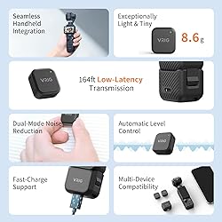 - VRIG Mic Mini Kit (2 TX + 1 RX + Charging Case), Wireless Bluetooth Lavalier Microphone for DJI OSMO Pocket 3,Magnetic Attachment, Detail-Rich Audio, 30h Use,Noise Cancelling (2 Wind Muff), Vlogs, Streaming