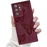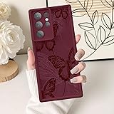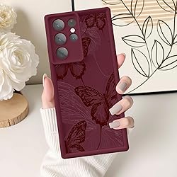 FUXICASE for Samsung Galaxy S22 Ultra Case, Creative Butterfly Pattern Design for Girl Women, Soft Silicone Shockproof Anti-Scratch Protection Phone Cover for Galaxy S22 Ultra (Burgundy Red Butterfly)