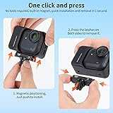 Versatile Compatibility: The Magnetic quick release mount for Insta360 G0 Ultra features dual interface options with a 1/4" screw thread and a two-prong connector, easily fitting various accessories like tripods and selfie sticks for enhanced flexibility. Compact and Lightweight Design: Weighing only 18g, this mini portable mount is designed for on-the-go shooting, making it the perfect companion for travel photography without adding extra burden. Strong Magnetic Hold: Equipped with dual insurance from strong magnetic attraction and a secure buckle mechanism, the mount allows for quick installation and removal with just a push and a press, ensuring a hassle-free experience. Durable and Corrosion-Resistant Material: Crafted from premium aerospace aluminum alloy in a one-piece design, the mount guarantees exceptional durability and resistance to corrosion, providing long-lasting performance for all your outdoor adventures. Multifunctional Use Across Various Scenarios: Whether you need to attach it to a neck strap, tripod, chest mount, or selfie stick, this Magnetic quick release mount offers endless creative possibilities for shooting in both indoor and outdoor environments.