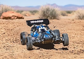 Bandit comes outfitted with factory-installed Extreme Heavy-Duty suspension components and arms for ultimate strength and durability. The rear axle carriers, C-hubs, and steering blocks are beefed up with more material and stronger construction. Bandit includes a powerful 8.4-volt 3000 mAh Traxxas Power Cell rechargeable NiMH battery pack to reach top speed. Fast 4-amp charging is available virtually anywhere thanks to the included 45+ watt USB-C battery charger with iD technology. Bandit reaches its blistering 35+ mph top speed thanks to a powerful Titan motor and XL-5 speed control. An integrated cooling fan draws air into the motor to keep temperatures down. The XL-5 ESC provides smooth, reliable power with EZ-Set one-button setup and three drive profiles. Bandit comes loaded for fun with a sleek offroad buggy body designed for high-speed passes. The body comes fully trimmed and painted with bold graphics with a high-downforce wing to help Bandit maintain stability at high speeds.
