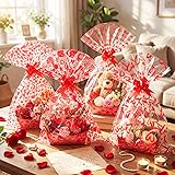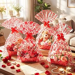 Convenient Set: a total of 24 sets of empty gift basket sets, including 24 heart empty baskets, 24 heart cellophane bags (4 designs, 6 of each), and 24 red pull bows; The quantity is sufficient and the styles are diverse, making it easy to meet your Valentine's Day gift packaging needs in one stop Heart Design: valentine's Day empty gift basket set, featuring classic heart elements paired with romantic red, exquisite and eye catching, filling the festive atmosphere with just one click! Add sweetness and joy to your gift, make every gesture more precious and unforgettable Appropriate Size: the top size of the empty gift basket is 9.8 x 6.5 inch, with a depth of 3.5 inch; The size of the cellophane bag is 19.7 x 27.6 inch; Pull bows width 1.2 inch, paper basket foldable stacking, does not take up extra space, the set is enough to accommodate all your Valentine's Day gift packaging Durable material: The gift empty basket is made of durable paper, which is foldable, easy to carry, and hygienic; Both the cellophane bag and the pull bows are made of safe plastic material, which is durable, waterproof and dustproof. Paired with high definition printing, it keeps your carefully prepared gifts in good condition throughout the holiday season Widely Applicable: suitable for romantic occasions such as Valentine's Day and weddings, it can hold good gifts such as chocolate and red wine, and is more exquisite when paired with decorative bags and tied with bows; It can also serve as party decoration; Easy to assemble without glue, it can also function as a storage basket to collect miscellaneous items, combining romance and practicality, adding a sense of Valentine's Day ceremony
