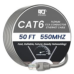 ATS Cables | CAT6 Plenum (CMP) Cable 1000FT | DSX-8000 Network Analyzer Test Passed | 23AWG UTP 4Pair, Solid 550MHz Ethernet Cables 10Gb, Available in 9 Colors (Gray, 50ft)