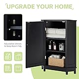 【ELEGANT & STYLISH】 - This black storage cabinet with doors is designed not only to meet your visual demands, but also to satisfy your functional needs. With inside two shelves, it can meet your various storage needs. Wooden knobs make it convenient for you to open and close. The closed storage room with doors can keep your stuff dry and clean. 【STURDY & MOISTURE-PROOF】 - Made of high quality MDF board which is more good-quality than the usually-use particleboard in others.As the panel is waterproof and anti-stripping it is easy for you to maintain the wood cabinet which will even like a new one after being used for a long time. Packed with an illustrated manual, easy to Assembly. 【TWO ADJUSTABLE SHELVES】 - Thanks to the adjustable shelves, they divide inner space into three parts, which ensures to adapt to different needs and make the best possible use of them. The storage cabinet can be put in your bathroom, laundry, pantry, living room, corridor and any other space to hold towels, toilet articles, spice jars, snacks and other items. 【SPACE-SAVING DESIGN】 - The compact cabinet fits small spaces and adds perfect storage space to all-sized bathrooms. Hides toiletries and other bathroom items behind cabinet door for a fresh and clean appearance. Classic white design adds character that blends with all bathroom styles. 【EASY ASSEMBLY】 - All parts and hardware are included, making assembly simple and straightforward,just follow the instructions.