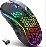 ULTRALIGHT HONEYCOMB DESIGN: Features a lightweight perforated shell structure that reduces weight while maintaining durability for extended gaming sessions WIRELESS CONNECTIVITY: 2.4GHz USB receiver provides stable plug-and-play connection up to 33 feet range for seamless wireless performance ADJUSTABLE DPI SENSOR: Optical sensor with three DPI settings (800/1200/1600) allows precise sensitivity adjustment for different gaming and work needs RECHARGEABLE BATTERY: Built-in 500mAh rechargeable battery eliminates need for disposable batteries and provides long-lasting power ERGONOMIC FEATURES: Right-handed design with 6 buttons plus scroll wheel, silent clicking operation, and RGB LED backlighting for enhanced functionality