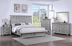 - Product Features: Traditional Style Panel Bed Built-in Footboard Bench/br> Rustic Light Gray Finish/br> Bar Metal Handle Pull/br> Strong and Durable Product Dimensions: Queen Size Bed : 82 X 66" X 63"H Dresser: 64" X 18" X 38"H Mirror: 49.8" X 2.1" X 38.3"H Chest : 38" X 18" X 52"H Nightstand : 28" X 17" X 26.5"H Product Description: This collection's panel bed set boasts a sophisticated design and a touch of modern elegance with its light gray finish. The bed frame features a panel headboard and footboard, creating a balanced and visually appealing look. The light gray finish adds a subtle and versatile tone to the bedroom. Listing Include: 6pc Bedroom Set(Queen Size Bed, Dresser, Mirror, Chest and 2x Nightstand)Only. Mattress : Not Included Simple Assembly Require. Include curb side delivery with free lift gate service, NOTE : No inside home delivery.