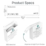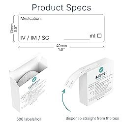 - Safe Vet Universal Veterinary Syringe Labels with Route, Volume Field and Checkbox Professional write-on medication labels for custom drug identification and safe injectable preparation. Each roll includes 500 labels (40×13 mm) with pre-printed fields for drug name, concentration, route, and volume. Designed for flexible clinical workflows: Ideal for compounded medications, off-label concentrations, and patient-specific formulations where pre-printed drug labels won't work. Clear checkboxes for common routes (IV/IM/SC) plus write-in fields for custom documentation. Built for daily clinical use: The semi-gloss finish accepts pen or fine-tip marker cleanly without smudging. Water-resistant, medical-grade adhesive bonds securely to syringes, vials, and IV lines — stays put through handling, refrigeration, and routine cleaning. Compatible with Safe Vet magnetic dispensers or dispense directly from the box during anesthesia prep, surgery, or treatment room workflows. Specifications: - 500 labels per roll - 40×13 mm - Semi-gloss synthetic paper with a smooth, writable surface - Water- and oil-resistant, medical-grade adhesive - Safe Vet dispenser compatible