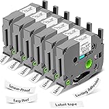 6-Pack Label Maker Tape Replacement 12mm 0.47 White Laminated for P Touch, Compatible with PTouch TZ-TZe 1/2" Black & White TZE231 for PT-D220 D210 H110 D200 D400 D610BT Refills (Black on White)
