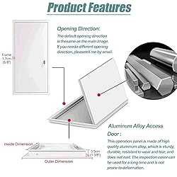 Aluminum Access Door: Drywall access door is made of aluminum alloy, its sturdy build ensures it won't deform or break easily. Honeycomb panel is waterproof, rustproof, and heat-insulated and can be used for a long tim Reducing noise: Our wall hole cover is used 18mm thickened honeycomb panels. The access hatch wall panel built-in sealing strip, windproof and rainproof, Reducing noise effect is good, to provide you with a quiet environment Easy to Open and Close: The frame is pre-drilled, allowing you to simply place the access panel into the wall hole and secure it with screws. For maintenance or inspection, simply insert the key and rotate it without removing the panel Safety Lock Design: Our plumbing access panel is equipped with an exclusive key, it is flexible and convenient to open, which can prevent accidental opening in daily life and further improve the safety of use Widely Applications: Suited for plumbing, electrical, wiring, security systems, cable, pipeline, HVAC, duct systems, sprinkler systems, water valves, clean-out access, gas lines. Ideal for home, living room, kitchen, and office
