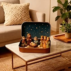 - Mini Christmas Nativity Set in a Tin Box - Handcrafted Portable Pocket Bethlehem Scene - Birth of Jesus with Holy Family Sheep and Jesus Figurines - Small Religious Christmas Decor【Handcrafted Detailed Scene】Features handcrafted tiny figures including the Holy Family, shepherds, Wise Men, sheep, and animals. Captures the beauty of the Bethlehem scene and the birth of Jesus with fine artistry.【Compact Portable Design】Folds neatly into a sturdy tin box, small enough for pockets, travel bags, or desks. Portable for spiritual inspiration anywhere, doubling as a convenient desk companion.【Meaningful Faith Symbol】A sacred Christian decor piece that celebrates the true spirit of Christmas. Brings peace, love, and hope to homes, churches, or offices as a daily faith reminder.【Durable Tin Packaging】Crafted with smooth metal tin for lasting protection. Vibrant colors and delicate details make it a spiritual keepsake and charming holiday collectible.【Thoughtful Christian Gift】Beautifully packaged and ready to gift. Ideal for family, friends, teachers, or anyone cherishing handmade religious Christmas decorations and festive faith-inspired gifts.