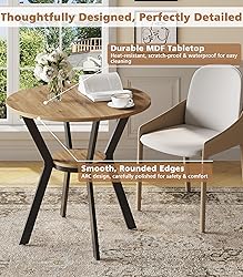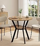 31.5” Round Dining Table in Natural Oak — Perfect for Bright, Modern Small Spaces: This 31.5-inch round dining table seats 2–4 people, making it ideal for apartments, Scandinavian-style homes, kitchen nooks, and small dining rooms. The light natural wood finish brightens any space—perfect for morning coffee, family meals, or cozy gatherings. (Package includes one table only.) Built-In Storage Shelf — Designed for Clean, Minimalist Living: Featuring a lower storage shelf, this small dinner table keeps your essentials neatly organized. Store dinnerware, napkins, cookbooks, or décor while maintaining a modern, clutter-free look. Ideal for small kitchens, minimalist interiors, and compact apartments where function and beauty matter. Durable, Sturdy & Easy to Maintain — Made for Everyday Use: Supported by a stable X-shaped pedestal base and heavy-duty black steel legs, this 31.5” small dining room table offers wobble-free reliability. The smooth MDF tabletop features a scratch-resistant, heat-resistant, waterproof natural oak finish—perfect for busy families, renters, and small households. Adjustable anti-slip feet stabilize the table on any surface. Natural Wood Look with Modern Scandinavian Style: The light oak wood-grain surface pairs beautifully with the sleek black metal base, creating a warm, modern aesthetic. This 31.5” small round dining table complements Scandinavian, minimalist, farmhouse, modern, boho, and coastal décor, making it a versatile addition to any home. Compact, Versatile & Space-Saving — Ideal for Small Homes: The 31.5-inch round design offers comfortable legroom and allows chairs to tuck in neatly. Perfect as an apartment dining table, breakfast nook table, small kitchen table, café or restaurant table, craft table, or even a small meeting table in home offices or studios. Quick Assembly & Seamless Finish — Customer Support Included: The upgraded custom metal connector ensures a tight, polished, gap-free assembly. With clear instructions and an installation video, setting up your natural wood round dining table is fast and simple. Our support team is always ready to help whenever you need assistance.