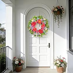 【Spring & Summer Front Door Wreath】Bursting with vibrant spring hues, this front door wreath instantly brightens your entryway and greets guests with a fresh seasonal feel. Expertly crafted by professional floral designers, this spring and summer wreath features an array of stunning faux flowers, including Peony, Some lush little flowers 【Durable & Sturdy】Made from high-quality silk flowers and realistic artificial greenery, and handcrafted with care, all blooms are securely attached to a vine base. This spring and summer door wreath is as delicate in detail as it is long-lasting. Even with long-term outdoor use, you won’t have to worry about the wreath fading or deforming 【The Perfect Size】When fully fluffed and expanded, this vibrant outdoor wreath measures 24 inches in diameter—ideal for decorating most standard doors and windows. Since the wreath is packaged in a 15-inch box for shipping, it only requires light fluffing (per the included instruction card) to achieve its full, lush appearance 【Bright & Fresh】Bright, beautiful, and lightweight, this delightful spring and summer wreath boasts full volume and flexible shaping. Whether displayed on your front door, living room wall, fireplace mantel, cabinets, windows, staircase, or balcony—or used as a table centerpiece—this wreath will infuse your home with a feeling of nature and vitality 【Perfect Gift for Any Occasion】Bursting with vivid colors and lush blossoms, this large 24-inch spring front door wreath makes a joyful gift for housewarmings, spring home refreshes, or all seasonal celebrations. Simply fluff the wreath to restore its vibrant, full look in just 2-3 minutes. It comes in a premium gift box for easy transportation and storage, making it a thoughtful gift for any occasion
