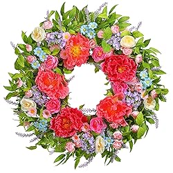 - Spring Wreath for Front Door 24 Inch, Summer Wreaths with large Peony for Home Decor Easter Indoor Outdoor Wall Festival Wedding Celebrations