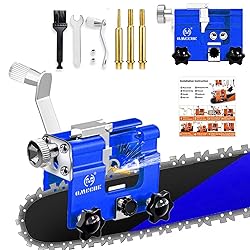 Easy To Use: Chainsaw sharpener employs a simple hand-cranked device to achieve precise sharpening; Just simply connect clamp, position pawl, insert burr into the guide sleeve and turn the handle—letting you sharpen chainsaw chain anytime, anywhere Rustproof And Durable: Adjustable chain saw sharpener tool is made of heavy duty alloy steel, featuring 2 fixed sharpening holes and a 30° pre sharpening angle, chainsaw chain sharpener compatible with most standard chain saws ranging from 4 to 22 inches Compact And Lightweight: Handheld-sized chainsaw sharpening kit includes 1 chain saw blade sharpener, wrench, cleaning brush, installation instructions and 3 diamond sharpen bits, making it the perfect companion for work and camping trips Precision Sharpening Bits: The industrial strength sharpening stone of chain saw sharpener hand crank ensures clean, burr-free edges with each sharpening session; The locking mechanism ensures the accuracy and safety of the sharpening angle Beginner-Friendly: This chain saw sharpeners allows first-time users to easily achieve professional results; The simple crank mechanism eliminates complex settings, improves clarity, and makes it the perfect gift for gardeners and outdoor enthusiasts
