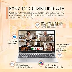 HP 15.6" Laptop – Complete Productivity Solution, Windows 11 With Microsoft Office, Intel 4 Core N100, 8GB RAM, 1.6TB Storage (128GB UFS + 512GB SD Card+1TB OneDrive), Copilot AI, Lightweight – Silver