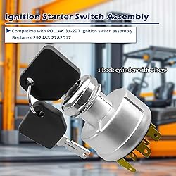 【Compatible models】Replaces part #4292483, 2782017, for pollak 31-297 clark forklifts, starter ignition switch and Hyster TO015B. 【Sturdy and durable】of high-strength metal/composites for wear, corrosion, rust resistance,Ensure long-term stable operation. 【Easy to Install】 Find the installation location, remove the old switch, and replace it directly with the new one without modification, saving time. Quickly help you solve problems caused by the ignition key not turning, unable to return to the starting position, and ignition switch malfunction 【Perfect substitute】Direct replacement for 4292483/2782017, compatible with Pollak 31-297 Clark and Hyster TO015B forklifts. Made with durable metal for long-lasting performance. Includes 2 keys for security and allows easy, no-modification installation. Quickly solve ignition issues and restore operation.