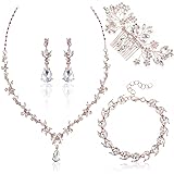 Package: you will receive a bridal jewelry set for women, contains crystal necklaces, earrings, bracelets and hair combs, this set of bridal jewelry echoes each other in style and elements, creating a harmonious and high end look Quality Materials: this mother of bride jewelry is rose gold plated and inlaid with AAA grade cubic zirconia; The crystal comb features rhodium plated branches and prong set crystals for durability and long lasting luster Suitable Size: both the necklace and bracelet include an adjustable length extender; The earrings drape elegantly without feeling heavy, while the comb provides stable support and evenly distributed weight, making this set comfortable and suitable for the whole day wear Practicality: the jewelry set design combines elegance and fashion, ideal for formal occasions like banquets and weddings, while also complementing everyday wear and dresses, adding a touch of sophistication to everyday outfits and allowing for seamless transitions from day to night Versatile Use: this prom jewelry set for women is ideal for weddings, formal events, anniversaries, balls, holiday parties, birthdays, and special occasions like anniversaries, creating a special moment of extra care and preciousness