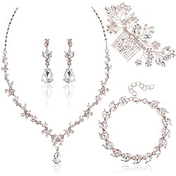 - Features: This set is not only a gift for others, but also a perfect treat for yourself. It symbolizes recognition, favor, and reward for oneself. A complete jewelry set is elegant and stylish, making it the wonderful gift to express love, whether given to a lover, wife, mother, or best friend. Specifications: Material: cubic zirconia Color: rose gold Size: Package includes: 1 x Necklace 1 Pair of dangle earrings 1 x Bracelet 1 x Bridal hair comb Notes: Manual measurement, please allow slight errors on size. The color may exist a slight difference due to different screen displays