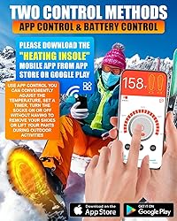 External battery placement keeps your foot light and flexible. These heated insoles feature durable rubber heating elements for long-lasting warmth and reliability. Use as directed for the best experience 【Long Lasting Warmth】Equipped with 5000mAh rechargeable batteries, these heated insoles deliver up to 11 hours of warmth on the lowest setting and about 4 hours on high. Switch among 4 heat levels without removing your boots and settle into steady comfort that lasts through real winter days. Our heated insoles keeps your feet warm from the morning commute to evening activities 【Control Warmth Your Way】These heated insoles rechargeable give you simple control on your phone. Set the heat anywhere from 86°F to 158°F, choose a timer up to 120 minutes, and enjoy quick warm up that you can feel within minutes. Prefer a hands on approach. Use the battery compartment button to change levels without opening the app 【Optimal Comfort and Fit for All】Enjoy a soft, supportive feel with five comfort layers that stand up to daily wear. These heated insoles keep their shape, cushion each step, and sit smoothly inside sneakers, boots, and work shoes. Trim along the dotted guide lines to match your size and get a secure fit for both men and women 【Heated Insoles Secure Fit and Simple Control】Keep the power off your foot for a safer, easier wear. These heated insoles rechargeable use an external battery that straps to the calf, so your shoes stay light and your step feels natural. The elastic band secures in seconds with velcro, the 65cm cable routes cleanly along the leg, and the insole sits flat inside your shoe for smooth, even warmth. Simple to put on, simple to control, and comfortable for all day use 【Heated Insoles for Wide Use】Heated insoles for men women keep feet comfortable in real cold weather, from daily commutes to winter adventures. Use them for skiing, hiking, fishing, hunting, cycling, motorcycling, outdoor work, dog walks, chilly morning runs, snow shoveling, and clearing ice from car windows. One pair takes you from weekday errands to weekend trips. 【Warm Winter Gifts】Our heated insoles rechargeable keep feet warm and relaxed through the whole season, making them a thoughtful gift for parents, partners, and friends. Perfect for birthdays, Thanksgiving, Christmas, and New Year, they turn cold days into cozy ones and show real care in a practical way.