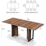 Bigbiglife 71 inch Dining Table for 6-8, Farmhouse Kitchen Table with Large Tabletop, Rectangular Dinner Eating Table W/Thickness Waterproof Wood Tabletop & Foot Pad, for Kitchen, Dining Room, Brown