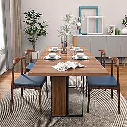Farmhouse Design: This large rectangular kitchen table features delicate lines and a simple yet stylish design. The tabletop utilizes a brown and black color block design to add a touch of color to your home. Whether you prefer a farmhouse look, modern aesthetics, or other unique styles, this natural wood-grain dining table can complement a variety of decorative themes. Large Enough for 4 to 8 People: Large Dining Table size with 71" W x 31.5" D x 30" H. The 71-inch rectangular dining table is designed with the perfect dimensions to accommodate 4-8 people comfortably. Whether you're hosting a family gathering or a dinner party with friends, this rectangular dining table is the perfect ideal. Durable & Sturdy Construction: Made from a 1.2" MDF wood that has been carefully selected for its durability and strength, waterproof surface that will withstand daily use. What's more, the frame is constructed from wood+iron materials which ensures strong stability for long-term use. The load-bearing capacity of 350 lbs. Engineered for Stability: This 6-person dining table is equipped with Heavy-duty H-shaped center support + widened wooden legs + metal feet, providing unprecedented support and excellent stability. Specially designed anti slip foot pads can effectively protect your floor from scratches when moving this industrial dining table, allowing you to enjoy dinner with peace of mind. Easy to Assemble: Designed for simple assembly, this kitchen & dining table comes with detailed instructions and complete tools. All parts and screws are labeled with matching numbers, so you can finish installation smoothly without hassle. Ideal for DIY enthusiasts.