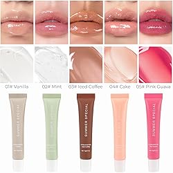 - SPECIFICATIONS Package Includes: 2 X Summer Lip Balms Net Content Per Unit: 0.5oz/ 15g Single Product Size: 4.92'' X 0.79'' X 0.79'' Colors Available: #01 Vanilla, #02 Mint, #03 Iced Coffee, #04 Cake, #05 Pink Guava FEATURES 1. The multifunctional lip gloss set boasts a smooth texture, delivering deep and long-lasting moisturization, keeping your lips plump and hydrated 2. Blending natural ingredients, this non-greasy formula is carefully crafted to lock in moisture, leaving your lips feeling soft and smooth 3. Whether you're braving the cold wind, enduring dry indoor air, or simply wanting to keep your lips feeling smooth and nourished, this long-lasting clear lip gloss can satisfy you HOW TO USE 1. Squeeze out an appropriate amount of product 2. Apply evenly to your lips 3. Make your lips moisturized and plump
