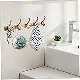Licsaliwe Vintage Coat Rack, 5-Hook Wall Hanger for Coats Keys Towels, Brown Aluminum Alloy Wall Mount Coat Rack for Entryway Bathroom Hallway