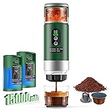 【Best Certified+ 7500mAh Large Battery and working time】This is the "ONLY" espresso machine on the market with a removable battery and the Longest working time, The latest 3.0 lithium battery technology ensures that the battery can better retain power, equipped with removable batteries, the working time is increased by 50%. Whether traveling or camping, give you the ultra experience. 【20 BAR Golden Pressure Extraction】The portable espresso maker operates at 20 bar of pressure, comparable to home espresso machines. This provides a stable, smooth extraction flow, This travel coffee maker retains the rich beautiful crema and original flavor of coffee to the greatest extent. 【Fast Self-Heating&One-Touch Operation】This mini espresso machine combines fast brewing technology with one button operation mode that is simple and fast for any user, Simply press the button and enjoy coffee, If you add hot water, the extraction only takes 70 seconds, and if you add cold water, it takes 5-7 minutes to heat up water. 【Next-Generation Removable Battery】camping coffee maker uses new removable battery, you are no longer worry batetry life. it provides greatly flexibility, if you need one more battery, you can buy in our store, you can enjoy one battery working, one battery can charging at the same time. portable coffee maker for travel supports up to 4 -5 cups espresso shots with cold water or 150+ brews with hot water on a single charge. Compatible with USB-C chargers, so you can easily power it up in your car or with a universal charger. 【Smart Display Espresso Machine】Electric espresso maker is equipped with a smart display, which allows you to see the remaining battery power and temperature more intuitively, so as to better arrange the extraction task.very convenient and smart. provides 80 ml water tank, Larger capacity than most coffee machines, you can extract more at a time. 【3-IN-1 Espresso Machine】This battery powered coffee maker supports a wide range of coffee types,including ground coffee, NS capsules,and DG capsules. No need to buy expensive proprietary pods. Saves money with flexible coffee options. car coffee maker is made of 304 stainless steel, which is not only durable and rust-free but also easy to clean. The leak-proof lid with a sealing ring adds a touch of convenience and ensures that your coffee stays put during travel. 【Compact Coffer Maker】 Whether at home, in the office, or while traveling, the automatic espresso machine seamlessly fits into your lifestyle. Its compact design and light weight make it ideal for small kitchens, office or RVs, especially in space-limited environments. 【Best Gifts for Coffee Lover】The cafeteras electricas modernas is beautifully packaged and is a great choice for gifts. For those who can't live without coffee at any time, a portable coffee machine provides them with a solution. Whether you are traveling on business, you can enjoy coffee in the first ray of sunshine in the morning.