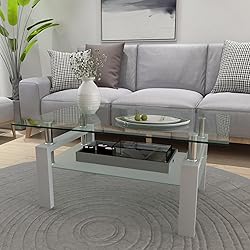 Rectangle Glass Coffee Table, Clear Coffee Table, Modern Side Center Tables for Living Room, Living Room Furniture(White)