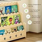 EXPERLAM Scalloped Bookshelf for Kids, 3-Tier Front Facing Book Display Shelf, Solid Wood Montessori Bookcase Organizer for Bedroom, Nursery, Playroom & Classroom