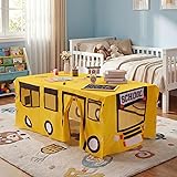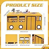 An Instant Lifelike Indoor Playhouse Table: this tablecloth playhouse is an ingenious item whereby simply covering your table with it, a lively and captivating school bus takes shape instantaneously; Pre-cut designs of doors and windows add a realistic touch; Throw in some sheets or blankets, and you will have a great time playing inside Generously Sized to Fit Various Tables: this school bus table tent measures 7.55 x 9.84 ft or 230 x 300 cm; This versatility in size makes it suitable for a wide range of tables, transforming them effortlessly into a fun and cozy playhouse School Bus Pattern Design: this school bus tablecloth printed with school buses, stop signs, and other school elements, cleverly depicting students going to school in the morning; Apart from augmenting imagination, it provides them their private space where they can play to their heart's content Lightweight and Strong Material: made of peach skin the table fort cover is resilient yet lightweight; With this dual attributes, post playtime, it can be conveniently folded, stored for next fun session, and transported easily for a picnic or a visit to a friend's house; It leaves a minimal footprint, taking minimal space Fun and Creative Gift Option: this tablecloth playhouse is a wonderful gift idea; They can read, play, and even sleep in this creative space; It's nice for filling a playhouse, bedroom, or outdoor area, especially on bright days; This school bus tablecloth is ideal for hosting a school bus-themed birthday party or back-to-school celebration