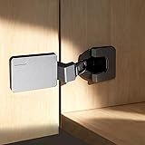 Effortless Installation: Cup depth: 0.47”/1.2cm, Cup diameter: 1.38"/3.5cm, Screw holes distance: 1.02"/2.6cm; Opening angle: 105 degrees; The range of door thickness is 0.7”-0.98“/18-25mm. Each hinge comes with 6 self-tapping screws, 1 arm cover and 1 cup cover to ensure a perfect fit. Each European style concealed kitchen cabinet hinge is only fit for frameless cabinets, installation hassle-free and saving you time and effort during home renovations Ultra-Thin Minimalist Design & 44lbs Strong Load Capacity: Only 0.47"/1.2cm depth of our soft close cabinet hinge, with a cover which create a clear appearence. The total hinge with cover is only the half of thickness of the standard hinges, but it achieve till 44lbs/20kg of bearing load with 1 pair, use maximum 5 hinges to support bigger cabinets(width ≤3.62'/60cm,height ≤94.49"/2.4m) Quiet Soft-Close Cabinet Hinge: Each cabinet hinge includes a built-in high-quality extended hydraulic cylinder, which prevents noises from the kitchen, prolongs the life of doors, cabinets, and hinges.The soft-close function engages at a 45° angle, providing added safety against pinched fingers 3D Smart Adjustment: Our soft close cabinet hinges designed for standard frame or frameless cabinets, achieve a flawless, seamless look with 3-way micro-adjustment. Easily fine-tune the cabinet door ±0.1"/2.5mm up/down, ±0.1"/2.5mm left/right, ±0.04"/1mm in/out. This ensures the door sits perfectly flush against the cabinet, creating a near-invisible gap of less than 0.04"/1mm High Quality and Reliable: Kitchen cabinet hinges constructed from high-quality stainless steel with a titanium-plated, these hinges are built for extreme durability. Its corrosion-resistant construction ensures a long lifespan, making it a reliable choice for your cabinets. Perfect for kitchen cabinets, bathroom cabinets, wardrobes, bookcases, TV cabinets, wine cabinets and other furnitures