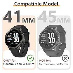 【Compatible Model】 The screen protector case is compatible with Garmin Venu 4 41mm. Please confirm your watch model and size before purchasing. 【Product Material】 The Garmin Venu 4 41mm screen protector case is made of high-quality TPU material, featuring an lightweight design that provides high sensitivity and definition. 【Full Coverage】 The all-around protective design effectively prevents the watch screen and sides from scratches, cracks, impacts, and other damage. Easy to disassemble for instant water stain cleaning. 【Product Design】 Precision cutout design makes each opening on the watch case aligns perfectly with the watch's buttons, ensuring normal use of functional buttons and ports. Available in a variety of colors to suit individual preferences. 【Easy Installation】 Remove the watch band, align the button direction on the screen protector case with the button direction on your smartwatch, and install it easily.