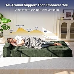 Folding Sofa Bed: This versatile folding sofa cushion easily converts between a floor sofa, wedge backrest lounger, and floor mattress, making it ideal for lounging, reading, gaming, or overnight rest in small spaces. Versatile Sofa Couch: Perfect as a floor mattress, sofa bed, or floor sofa cushion for living rooms, bedrooms, dorms, and apartments. Foldable design allows easy storage when not in use 8 Inch Foam Filling: The thickened mat body is filled with high-density foam, which effectively disperses pressure and provides softer yet stable support. Whether you are sitting for a long time or lying down to rest, you can feel a comfortable experience and relax your body Soft Fabric with Tufted Craft: Wrapped in breathable, soft corded fabric, the surface feels warm and cozy. Button tufting enhances durability while adding a clean, modern look that blends seamlessly into your home décor No Assembly Required: No setup or tools required — simply unbox, unfold, and allow the mattress to fully expand in a ventilated area for 72 hours. Once rebounded, it's ready to provide comfortable support for everyday use or overnight guests