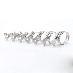 - 1. HIGH : Hose clamps stainless steel made of 304 stainless steel, constructed to resist scaling and erosion and ensure long- term use. 2. AMAZING FUNCTION: These dryer vent clamp are used to lock the hose tightly with a view to preventing flow leakage. This hose clamp can be applied for securing hose, cable, pipe, tube, fuel lines in domestic applications, automotive, boat, industrial and so on. 3. EASY TO USE: Can be simply loosened or tightened by using the adjustable handle without any other tools. Clamps are removable and reusable. Specification Item: key-type hose clamp Mateial: 304 stainless steel Type: Adjustable Band Range: 6mm to 63mm(0.236-2.48 inches)