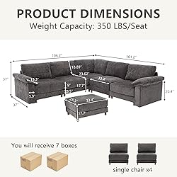 Oversized & Comfortable Seating: The living room sofa features a 37-inch deep seat cushion design, equipped with thickened and widened double-layer cushions and a 19-inch backrest, significantly taller than most sofas, providing your entire family with a spacious and comfortable resting space. Custome Modular Layout: Each cloud sofa unit can be moved and rearranged independently, allowing you to freely combine them into your desired layout based on space size and needs—whether L-shaped, U-shaped, or expanded into other configurations. Modules connect securely yet remain easy to disassemble, so you can effortlessly assemble your preferred arrangement. We provide essential assembly instructions and installation videos to make the process more convenient and straightforward. Structural Upgrades:This modular cloud sofa features an upgraded, sturdy solid wood frame construction, with each seat capable of supporting up to 360 pounds. The armrests and corner modules now come equipped with fixed, ergonomic backrests that enhance seating comfort while simultaneously improving stability, delivering a more relaxing and supportive seating experience. Premium Chenille Fabric: This couch living room is meticulously crafted from soft chenille fabric, offering a smooth, non-abrasive feel with a soft, breathable texture. The seat cushions, back cushions, and armrest cushions are all removable for easy daily cleaning. It's especially suitable for households with children and pets. Packaging Instructions: This l shaped sectional will be delivered in multiple boxes. Please verify all items are present before assembling the sofa. If any damage or missing parts occur during transit, promptly take photographs and contact our service team.