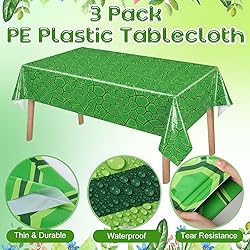 Turtle Party Tablecloth Set: you will receive a Turtle party decorations contains 3 dark green tablecloth; The rectangle table cover is about 53.94 x 107.87 inches/ 137 x 274 cm; Suitable for cartoon theme party decorations, birthday party decorations and ocean themed party supplies Turtle Birthday Party Decorations: dark Green tablecloths feature a shell design, adding a natural feel to the party; Suitable for cartoon party, reptile birthday party decorations and lizard party decorations Dark Green Table Cloths: the Turtle table covers are made of 2.5 mil thick PE material, offering a richer texture, tear resistance, water and oil resistance, effectively protecting tabletops from stains; Simply roll them up and discard after the party, reducing cleaning burden; Suitable for birthday, baby shower and party Large Table Cover: each rectangle tablecloth is most family dining tables, long tables, outdoor folding tables, etc.; You can fold the table cover or cut to fit small tables; Its large coverage area makes it suitable for indoor and outdoor setups, easily creating a neat and beautiful party decorations Convenient storage: each tablecloth is packed in an independent OPP bag to keep the products clean and tidy, which is convenient for warehouse counting and warehousing; Whether retail, stocking or batch party preparation, it is more standardized and orderly