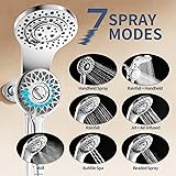 【Magnetic Docking Design】Unlike traditional shower head holders, our shower head holder features an innovative metal magnetic clasp mechanism. The magnetic clasp is made of premium-quality metal, offering strong magnetic force for a secure and reliable connection. With the magnetic double shower head with handheld combo, no worries about detachment or taking up space in the bathroom. With just a simple snap, the handheld spray quickly locks back into position, great for busy moments. 【Dual Shower Head Combo】Equipped with an upgraded 2-in-1 diverter, this system allows water to flow from the overhead rain shower and handheld sprayer simultaneously or separately. The magnetic docking system features a large rainfall head for full-body coverage and a flexible handheld sprayer for targeted cleaning. Enjoy a luxurious spa-like experience right at home. The 【7-Mode Rainfall Shower Head】The large magnetic shower head offers 7 distinct modes—simply turn the knob gently to switch between them effortlessly. It uses advanced air-infusion technology to boost water pressure. By blending air and water, this renter friendly dual shower heads creates a natural rainfall massage flow that hydrates every inch of your skin. 【5 Settings for Handheld Sprayer】The handheld sprayer features 5 selectable settings: trickle, particle spray, blade waterfall spray, inner ring rain spray, and outer ring rain spray. Easily flick the paddle on the shower head to switch modes for a comfortable, personalized shower experience. The 71-inch extra-long hose effortlessly reaches every corner of the bathroom, offering exceptional convenience for bathroom cleaning. 【Easy Installation】All accessories you need is in the box. This rainshower head with handheld spray is designed with a rotating nut – simply hand-tighten it into place, and installation is done in minutes. The universal G1/2" thread connects quickly to any standard shower arm or pipe. Installation is a breeze as you follow the step-by-step instructions in the user manual.