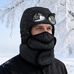 Ultimate Cold-Weather Protection: Features integrated goggles and a removable, windproof face mask for comprehensive coverage, protecting your entire head, face, ears, and neck from extreme cold and harsh winter conditions. Superior Thermal Insulation: Combines a durable 100% polyester shell with a soft faux fur inner lining to effectively trap heat, providing exceptional warmth during skiing, snowboarding, hiking, and other demanding outdoor activities. Versatile 3-in-1 Design: Includes a detachable face cover and a lengthened chin strap that functions as a protective bib. This allows for customizable protection, adapting easily to varying weather conditions and ensuring comfort in any environment. Universal & Adjustable Fit: Designed for convenience, this trapper hat features one size that fits most adult head circumferences (22"-24.4"). An adjustable buckle ensures a secure and comfortable fit for both men and women. Ideal for Diverse Winter Sports: Perfectly suited for skiing, snowmobiling, skating, camping, hiking, cycling, and more. The integrated goggles and face mask provide essential windproof protection and maintain clarity during all your winter adventures.
