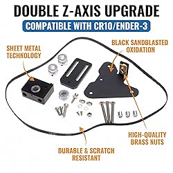- Maximize Your 3D Printer's Accuracy with the [] Dual Z Axis Upgrade SeriesWhether you are looking to synchronize your existing dual Z-axis setup or need the mechanical brackets to start your upgrade, we have the right solution for you.Why is Z-Axis Synchronization Important?Over time, the X-gantry on Ender-3 and CR-10 printers can sag on the right side, leading to uneven prints. By linking the two sides with a timing belt, you ensure that both sides rise and fall in perfect unison.Choose the Right Kit for Your Needs:Option 1: Sync Belt Kit OnlyBest for: Users who already have a Dual-Z motor setup installed but want to add a timing belt for synchronization.Includes: 1x Aluminum Tensioner Block, 1x GT2 Belt, 2x Pulleys, 1x Idler, Mounting Hardware.Option 2: Sync Kit + Z-Axis Mount PlateBest for: Users who are mechanically modifying their printer to Dual-Z and need the bracket to hold the second lead screw nut.Includes: Everything in Option 1 PLUS 1x Triangular Metal Carriage Plate, 1x Brass Lead Screw Nut, Spacers.Installation Note:The Top-Mount Tensioner is designed for standard 2020 aluminum profiles. The system is easy to adjust—simply slide the idler pulley on the slotted block to achieve the perfect belt tension.Package Specifications:Material: Aluminum Alloy & Sheet MetalSurface Treatment: Black Sandblasted OxidationFit: Ender 3 Series / CR10 Series