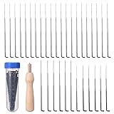 【Complete Starter Kit】 This needle felting kit provides all essential tools to begin wool felting. It includes a versatile wooden handle that accommodates multiple needles, protective finger cots for safety, and a comprehensive assortment of needles in three distinct sizes 【Organized Storage Solution】 Our felting needles are designed for easy organization and long-term use. The three different needle sizes are stored separately in clearly labeled, durable plastic bottles to prevent mixing and confusion. The entire set, including the bottles and wooden handle, fits neatly into a provided plastic storage box 【Durable & Ergonomic Design】 Constructed from high-quality hardened metal, these felting needles are built to resist breaking during repeated use. The wooden handle features a comfortable, secure grip, reducing hand fatigue during extended crafting sessions. Its multi-needle design allows you to speed up the felting process by using several needles simultaneously 【Versatile for All Skill Levels】 This needle felting needles are engineered to meet the needs of crafters at any level. The inclusion of three specific needle types—contour, detail, and standard felting needles—covers all techniques required for wool-poking crafts 【Practical for Daily Crafting】 These wool needle felting needles are perfect for home DIY, offering a practical solution for creating personalized handicrafts