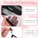 Clear Organization: These transparent mesh cosmetic bags allow you to see contents instantly, eliminating the need to open each pouch during travel or daily use. The see-through design is particularly convenient for TSA inspections and quick item retrieval Versatile Application: This multipurpose makeup pouch set serves beyond cosmetics, functioning as a pencil case, coin purse, travel organizer, or small electronics bag. The breathable mesh material is ideal for storing damp items like washed makeup sponges or brushes, allowing them to air dry quickly Durable Construction: Crafted from high-density nylon fabric, these small mesh zipper pouch resist tearing, fading, and wear. The smooth plastic zipper ensures reliable closure and easy operation. While sturdy enough to maintain shape, the material remains flexible. The reinforced hanging loop on the zipper provides an option for secure hook storage, enhancing organization in bathrooms or luggage. Practical Sizing: The set includes two sizes to accommodate various items. Mesh cosmetic bag are perfect for palettes, sheet masks, or documents, while rectangular cubes hold bottles, brushes, or bulkier essentials. This size variety allows for logical categorization, from daily makeup to travel-sized toiletries, maximizing packing efficiency and space utilization in any bag User-Focused Design: Designed with practicality in mind, these mesh makeup bag with zipper feature easy-grip zipper pulls that also function as carrying handles. The transparent grid pattern ensures visibility without compromising durability=