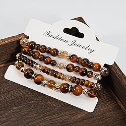Caiyao 4Pcs Tiger Eye Crystal Beaded Stackable Charm Bracelets Set Multilayer 6-10mm Brown Amber Gemstone Glass Beaded Stretch Bracelets for Women Men Summer Beach Boho Holiday Jewelry Gifts