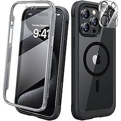 Diaclara Magnetic for iPhone 15 Pro Case, [Military-Grade Drop Proof & Fit for MagSafe] Built-in Shockproof Screen Protector, [Camera Lens Protector] Phone Cover for iPhone 15 Pro 6.1"(Black)