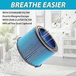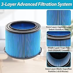 VF3500 Replacement Filter for Rigid 3-4.5 Gallon Vacuums: Designed as a direct replacement for the Rid gid VF3500 Filter, this 2-pack is compatible with popular Rid gid Wet Dry Vac models including WD3050, WD4050, WD4070, WD4080, WD4522, 4000RV, and 4500RV (3, 4, and 4.5-gallon sizes). Ensure optimal performance for your shop vacuum with this perfect-fit filter. 3-Layer Fine Dust Filter for Superfine Particles: Our replacement filter features an advanced 3-layer design with a deep-pleated structure, providing a larger surface area to capture 99% of dust and particulates as small as 0.5 microns. It’s ideal for fine dust, drywall dust, cement dust, sawdust, cold fireplace ash, and other superfine debris, ensuring cleaner air in your workspace. Washable and Reusable: Made from durable, high-quality filter paper, this VF3500 filter is completely washable and reusable. Simply rinse with water, let it dry thoroughly, and reinstall. This eco-friendly design saves you money compared to disposable filters, making it a cost-effective maintenance solution for your portable wet/dry vacuum. Effortless Installation & Maintains Strong Suction: Enjoy easy installation in under a minute—no tools required. Just remove the old filter and snap this one in place. The efficient pleated design prevents rapid clogging and helps maintain powerful suction throughout use, ensuring your shop vacuum operates at peak performance for every clean-up task. Protects Your Vacuum Motor & Improves Air Quality: Regularly replacing your vacuum filter is key to extending the lifespan of your vacuum by preventing motor damage from dust. Using this high-efficiency filter also improves health and air quality in your workshop, garage, or home by trapping harmful fine particles. For best results, clean or replace the filter every 3-6 months depending on usage.