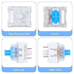 Precise Clicky Typing: These blue mechanical keyboard switches are engineered for users who demand accuracy and tactile feedback. The distinct clicky mechanism provides a strong, satisfying actuation point with every keystroke, making them ideal for typists and gamers who rely on precise input Thoughtful design: This keyboard keycap features a durable plastic shell and construction that effectively prevents debris from entering the internal mechanisms. This protection, along with high-quality internal components such as copper contacts and steel springs, ensures a reliable lifespan with a rated keystroke life of up to 50 million keystrokes LED Backlight Compatibility: The transparent blue housing of these mechanical key switches is specifically designed for LED backlit keyboards. This design allows for vibrant and uniform diffusion of RGB or single-color lighting effects, enhancing the visual impact of your gaming setup or workspace without compromising the switch's tactile performance or durability Smooth performance: Each 3-pin keyboard switch is lubricated to ensure a smooth and consistent key feel from the first press. This precise lubrication reduces friction between moving parts, minimizing scratching and noise for a more comfortable typing experience Wide Keyboard Compatibility: Featuring a standard 3-pin design, these blue mechanical keyboard switches offer broad compatibility, allowing for upgrades or customization of most mechanical gaming keyboards. Easy installation lets you effortlessly upgrade your device