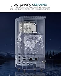 High-Efficiency Under Counter Ice Maker:This commercial under counter ice maker machine produces up to 90 lbs of clear ice per day, delivering 40 ice cubes every 10–18 minutes. The 24 lb storage bin provides a reliable supply, making this ice maker commercial ideal for home kitchens, bars, restaurants, hotels, and cafés. Under Counter Ice Maker with Drain Pump :Unlike standard ice machines that rely on gravity drainage, this under counter ice maker features an electric drain pump for efficient water removal. This design helps keep the interior clean, extends the lifespan of the commercial ice machine, and allows flexible installation even without a floor drain. Compact Ice Machine for Built-In or Freestanding Use: With a built-in size of 14.96 × 18.47 × 33.99 inches (including adjustable feet), this ice maker under counter fits standard-height cabinets and bars. It can also be used as a freestanding ice maker, offering versatile placement for both residential and commercial spaces. Smart Control Ice Maker Machine :The intuitive LCD panel on this ice maker machine displays ambient temperature and allows you to adjust ice cube thickness by changing ice-making time. The 24-hour timer lets you schedule operation easily, improving convenience for daily use. Self-Cleaning Under Counter Ice Machine: This commercial ice maker includes a one-touch self-cleaning function—press and hold the “Timer Clean” button for 5 seconds to activate. A water supply is required. Keep the ice machine upright for 24 hours before first use. If the drain pump is disconnected or not in use, empty the ice bin in advance.