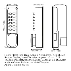 - Specification: Item Type: Mechanical Combination Lock Material: Zinc Alloy Color: As shown in the picture Password Panel Size: Approx. 142x42x40mm / 5.59x1.65x1.57in Rubber Seal Ring Size: Approx. 148x50mm / 5.83x1.97in Rubber Sealing Hole Diameter: Approx. 10mm / 0.4in The Distance Between the Rubber Sealing Hole Diameter and the Center Point of the Hole Diameter: Approx. 130mm / 5.1in Password Length: 1-11 digits Applicable Door Thickness: 10-60mm / 0.39-2.36in Working Temperature: -20+60℃ Applicable Environment: Waterproof and high temperature resistant Applicable Type: Indoor/outdoor door Function: No need for battery or wired power Weight: Approx. 1288g / 45.4oz Package List: 2 x Door Lock Panel 2 x Rubber Pad 1 x Lock Tongue 1 x Door Holder 1 x Door Stopper 2 x Short Screw 1 x Screw 3 x Long Screw 1 x Square Bar 1 x English Manual Note: 1. Please allow 1‑2in error due to manual measurement. Thanks for your understanding.2. Monitors are not calibrated same, item color displayed in photos may be showing slightly different from the real object. Please take the real one as standard.
