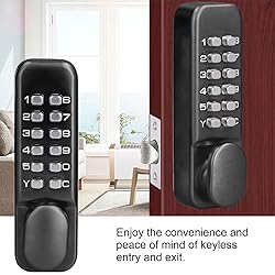 Premium Zinc Alloy Construction + Keyless Mechanical Design: Crafted from high-quality zinc alloy for rust proof, sturdiness, and long service life. Fully mechanical (no batteries/power required) with no keyholes—anti-theft and unpickable, ensuring energy-saving, safe, and eco-friendly use. 4-7 Digit Flexible Password Combination + Passage Mode: Set non-repeating 4-7 digit (letters/numbers) codes (press "C" first, no order required; 7-digit recommended for max security). Switch to Passage Mode for temporary keyless access (ideal for parties/moving), then toggle back to secure mode. Single-Side Keypad + Easy Operation: No code needed from inside—simply turn the handle for quick exit, perfect for high-traffic areas (offices, warehouses). Sensitive buttons with good touch feel, no noise for quiet use; manual locking/unlocking prevents accidental lockouts. Tool-Free Installation + Wide Door Compatibility: No wiring required—sturdy fixing bolts enable easy installation. Fits 60mm (2.36") backset doors (not 70mm/2.75") with 35mm–50mm thickness; adjustable handle works for left/right-handed doors (not suitable for glass doors). Versatile Anti-Theft Applications: Ideal for wrought iron doors, courtyard doors, passage doors, outdoor doors, homes, warehouses, offices, and hotels. Anti-theft design with manual deadbolt provides full security control, eliminating key loss troubles.