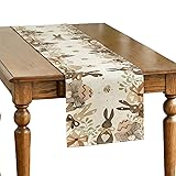 Mode Bunny Rabbit Egg Flower Easter Table Runner, Easter Household Decoration Plate Mat Washable Linen Tablecloth Reusable Seasonal Spring Kitchen Dining Table Decoration for Home Party Decor