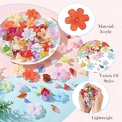 Craftora 230Pcs Colorful Acrylic Flower Leaf Beads Fairy Garden Floral Sunflower Bead Caps Tree Leaves Plant Beads for Spring Necklace Jewelry Making Beaded Plants Bonsai Tree